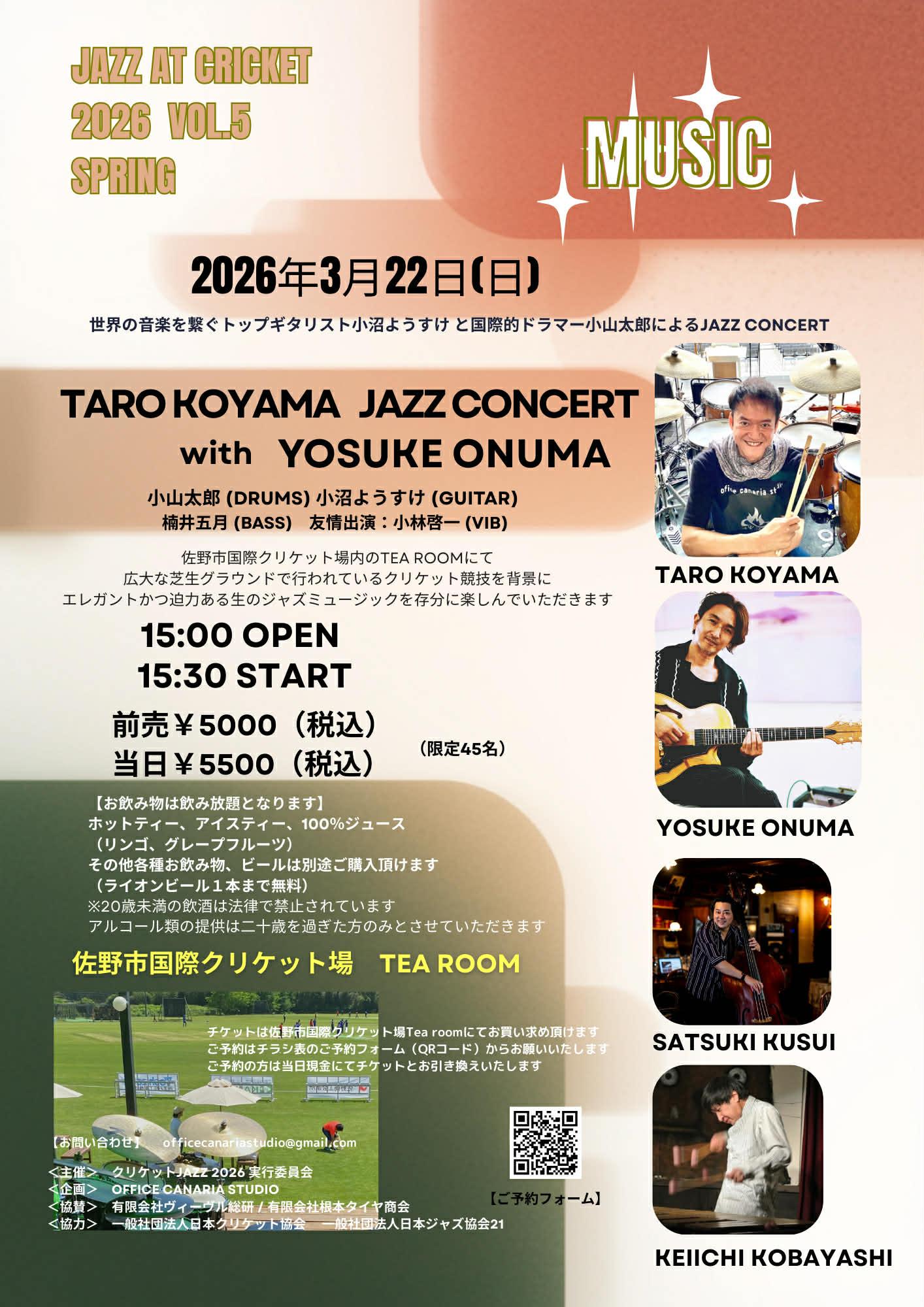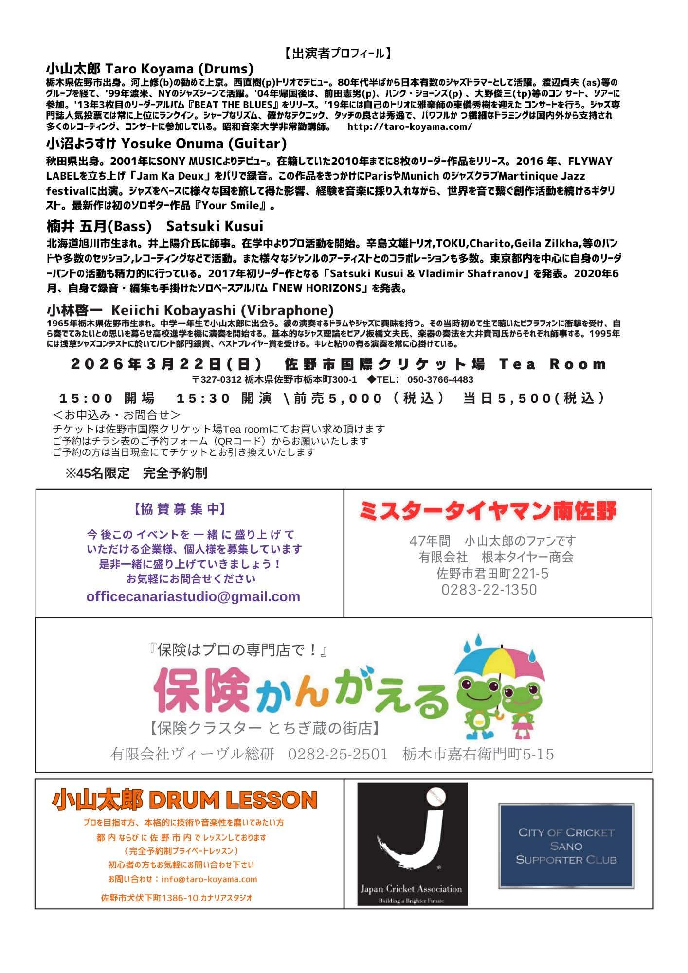 🟤栃木 佐野市国際クリケット場 TARO KOYAMA JAZZ CONCERT with YOSUKE ONUMA
